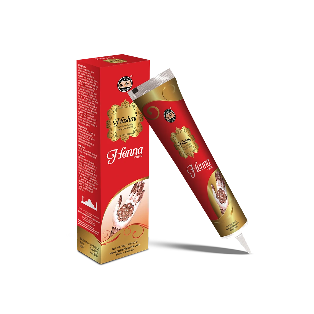 HASHMI Henna Paste in a convenient tube form is perfect for anyone who loves body decoration art. Traditionally used on hands, feet, nails, or as temporary skin tattoos, it brings beauty and elegance to special occasions. Ideal for weddings, Eid, and festive gatherings, this natural paste celebrates culture, joy, and tradition.